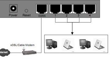 1,将家里的internet网入口网线与路由器的WAN口连接,再用事先准备好的网线将电脑与路由器的LAN口连接(如下图所示)。
