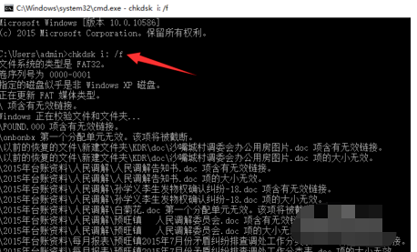 3,从打开的“命令提示符”窗口中,输“chkdsk i: /f”并按回车键以进行修复操作。