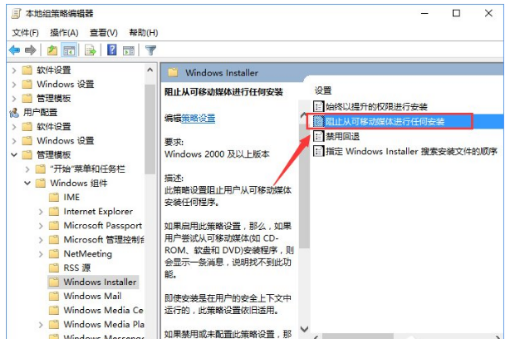 然后双击打开“阻止从可移动媒体进行任何安装”,