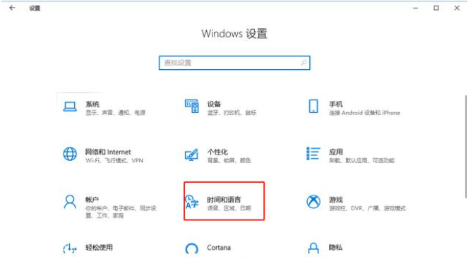 2、在系统设置窗口选择“时间和语言”;
