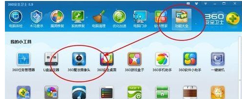 如果你的电脑安有360安全卫士的话,那么就很方便了,打开360安全卫士,进入功能大全界面添加360魔法摄像头功能即可