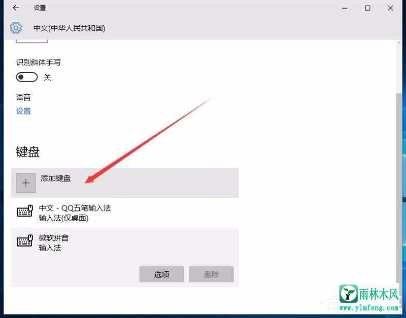 6。添加Microsoft Wubi后,现在可以删除拼音输入法。