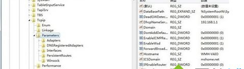 2.在弹出的“注册表编辑器”中依次打开以下选项“HKEY_LOCAL_MACHINESystemCurrenControlSet ServicesTcpipParameters”子键;接着在窗口右侧选项栏内,找到名为“GlobalmaxTcp WindowSize”的DWORD键值项,把数据值数据设为“256960。