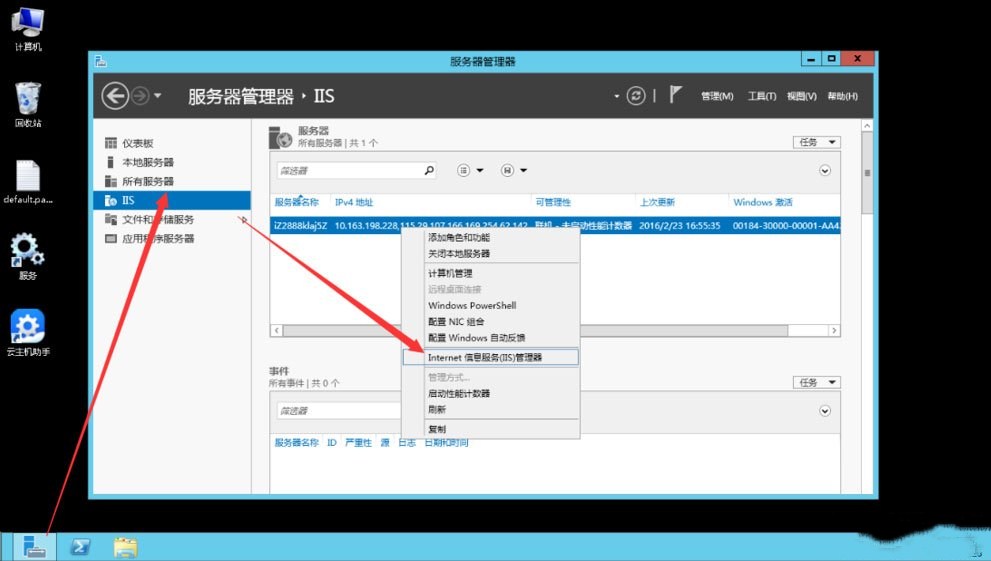 6、点击服务器管理器-IIS,右击打开Internet信息服务(IIS)管理器;
