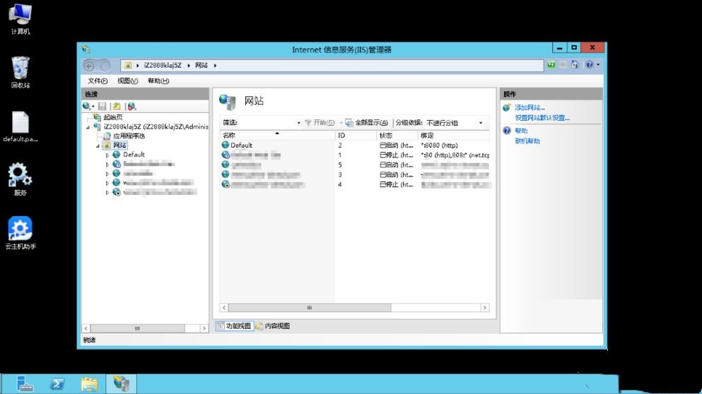 7、点击IIS里面的网站,就会看见当前服务器上的网站,进行管理。