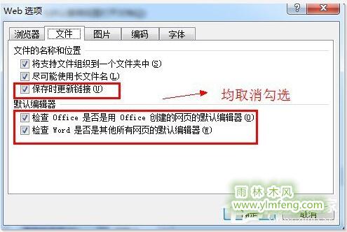 5、点击第2步骤图中的“web选项”,选择“文件”选项卡,按照如下图进行设置: