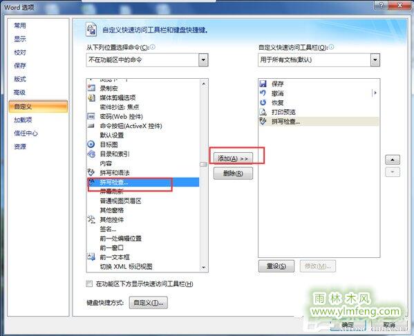 5、滚动并选择“拼写检查”。单击“添加”-“确定”。