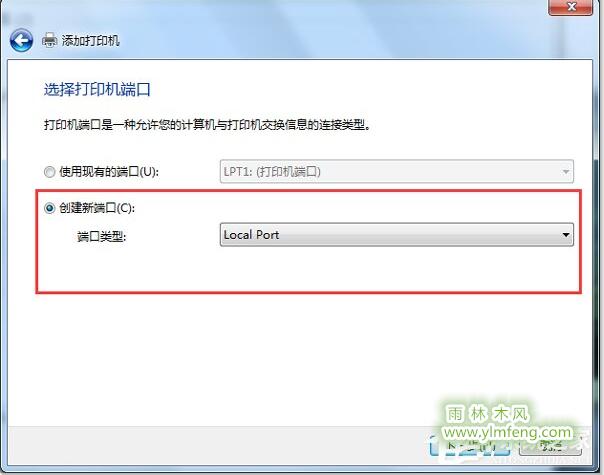 6、单击“创建新端口”,然后单击端口类型选项中单击“Local Port”。