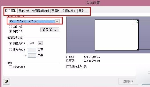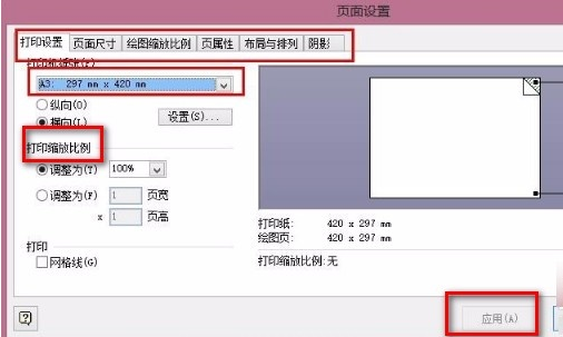 6、还可以根据自己的需要,在窗口中对打印方向、打印缩放比例等参数进行设置,设置完毕后,在窗口底部分别点击“应用”和“确定”按钮。