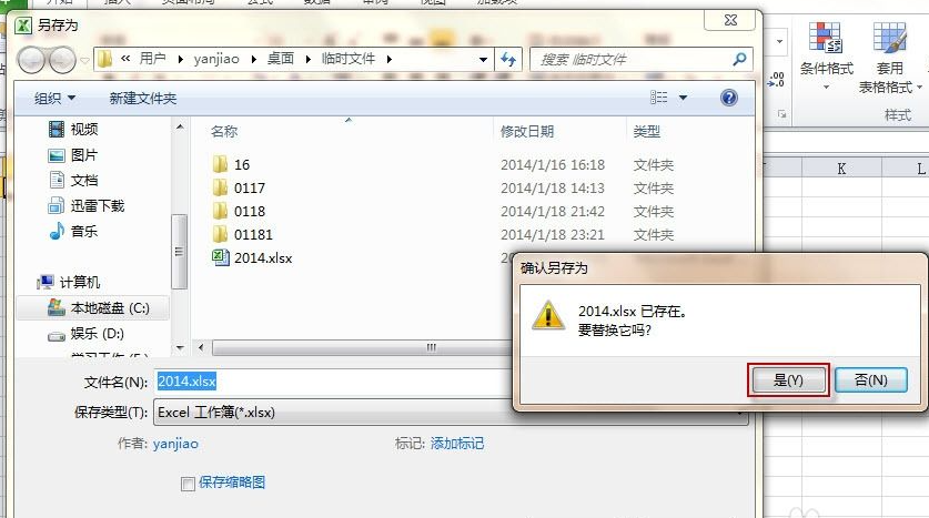 4、保存时会提示文件已存在是否要替换它,选择是。