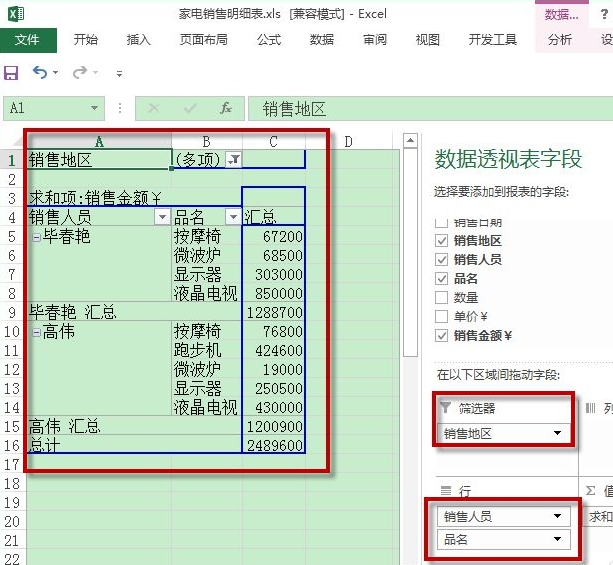 excel表格数据透视图教程_excel中数据透视表的使用方法
