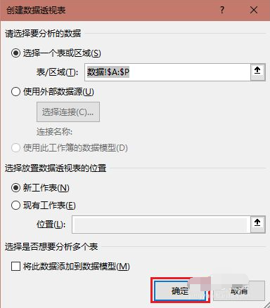 2、在如下的窗口中,可以修改数据区域,可以调整数据透视表生成的位置,也可以不做任何修改,直接点击“确定“。