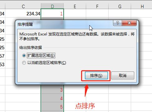 5、在弹出的对话框中,点排序。