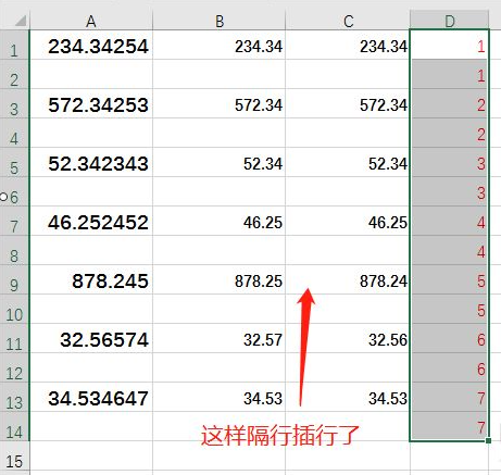 6、最后删除刚生成的数字,这样隔行插行就完成了。