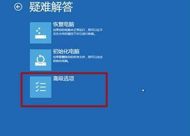 2、接着我们在页面中选择“疑难解答”然后点击“高级选项”。