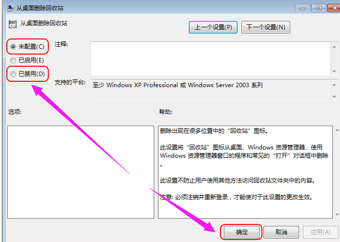 最后,在弹出的窗口中,选择“未配置”或者“已禁用”,并点击确定。
