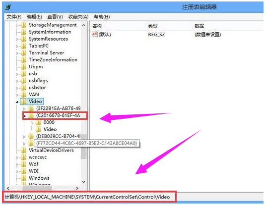 打开注册表后,依次展开“HKEY_LOCAL_MACHINSYSTEMCurrentControlSetControlVideo{C2016678-61EF-4A63-AEDC-F0E05E68A311} 000(注意:{C2016678-61EF-4A63-AEDC-F0E05E68A311}会因显卡不同而不同,确定好再进行后续操作)。