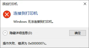 连接打印机错误代码0x0000007c?