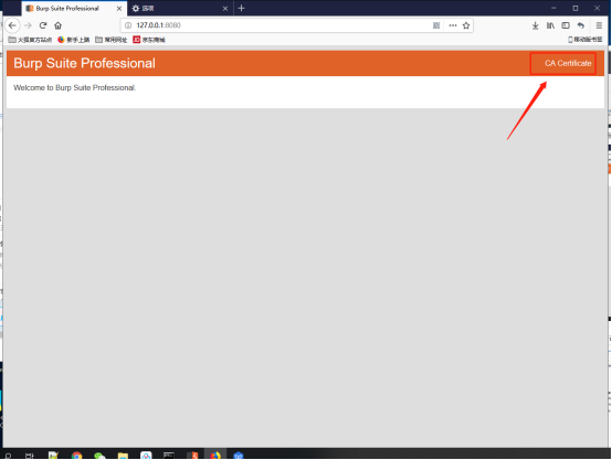 2、输入127.0.0.1:8080,点击回车,进入burp证书下载页面