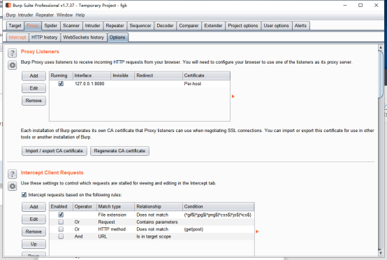 1、打开burpsuite,先设置浏览器,工具-选项-网络设置-设置,将连接设置改为手动代理配置