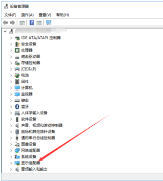 在win10设备管理器对话框里点击显示适配器