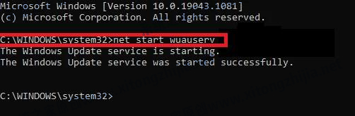 再次打开命令提示符,并一一输入以下命令:net start wuauserv