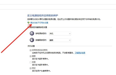 4、进入电源功能后,选择“更改当前不可用的设置”。