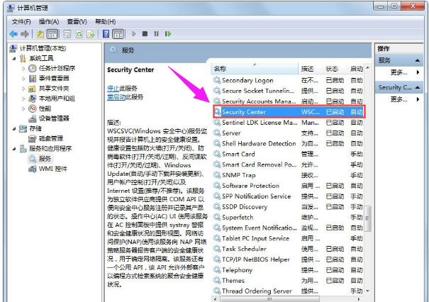 找到Security Center服务选项,可以看到这个服务是启动了的
