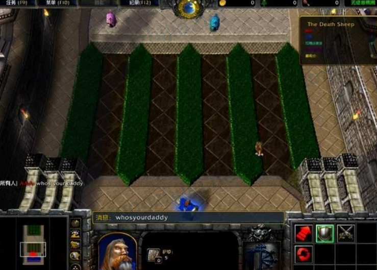 看来War3的程序还是十分健壮的,原本想玩玩守卫雅典娜,可惜这个安装包并没有内置此任务。只找到一个叫the death sheep的任务,这么多年一直不知道怎么玩,好像输入whos your daddy也没有什么卵用。