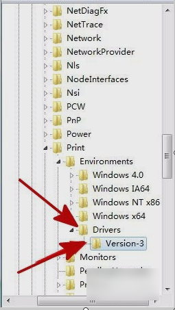 在“注册表编辑器”窗口左侧按顺序开“HKEY_LOCAL_MACHINE”,“SYSTEM”,“ControlSet001”,“Control”,“Print”,“Environments”,