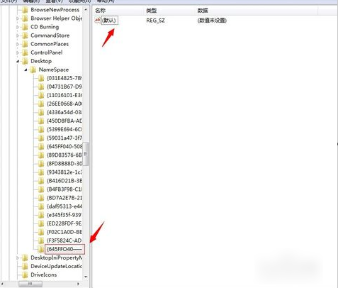 新建一个”项“后,会在左边出现一个“新建#1”的文件夹,然后把“新建#1”的文件夹名字改成““{645FFO40——5081——101B——9F08——00AA002F954E}”数值,改好后,右侧也会出现“默认”字样。