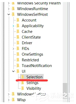 (4)同理,再将WindowsSelfHost下的UI-Selection打开。将右侧“UIBranch”的数值数据也改为“Dev”后点击确定。