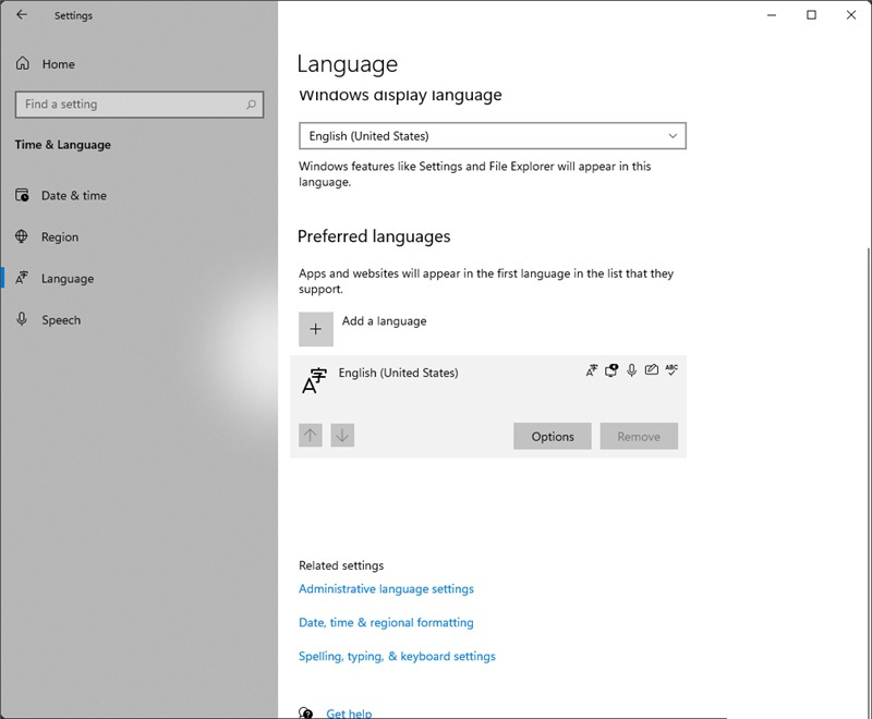 解决办法:删除中文语言包(Settings - Time & Language - Language - 中文(中华人民共和国) - Remove),仅保留英文语言包(如下图)