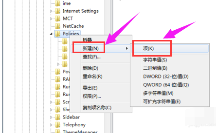 右键点击Policies项,选择【新建】,【项】将其命名为:System。