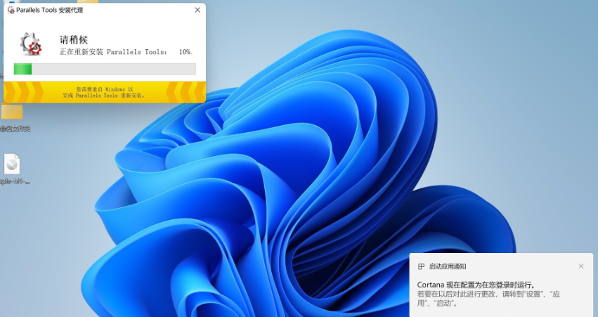9.多次重启后,进入Win11系统,电脑会自动更新Parallels Tools,等待一分钟即可。