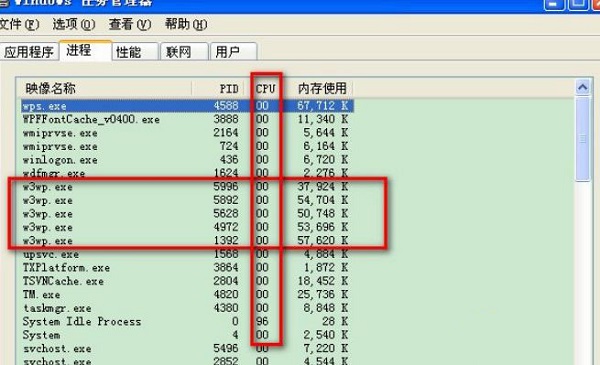 XP系统w3wp.exe进程占用CPU内存过大怎么办?