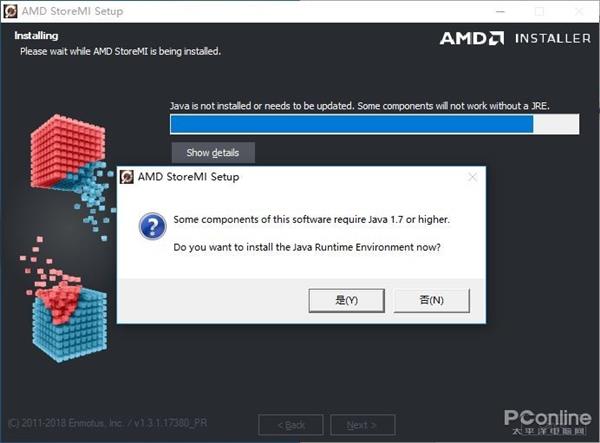 安装过程没什么好说的,虽然都是英文,但我们只要不断点击Next,Next和Next就好。到接近安装过程末尾时可能有些用户会弹出一个警告,意思是该软件的一些组件需要安装Java 1.7或者更高版本,你是否需要安装,此时直接点是就好。