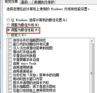 5、优化视觉效果,首先右击计算机图标选择属性, 然后在弹出来的界面中点击左侧的“高级系统”设置,然后在弹出窗口中切换到“高级”选项卡,点击性能栏目下的“设置”按钮,然后将时间效果选择“调整为最佳性能”或只保留一些必要的项目即可。