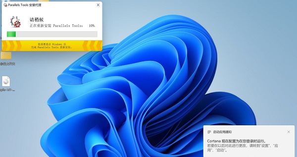 9、多次重启后,进入Win11系统,电脑会自动更新Parallels Tools,等待一分钟即可。