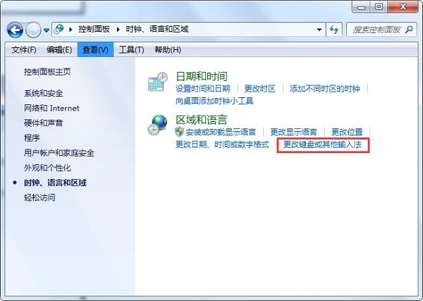 在区域和语言下面点击更改键盘或者其他输入法