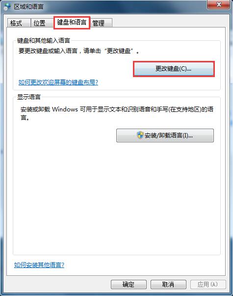 在选项卡点击键盘和语言,点击更改键盘
