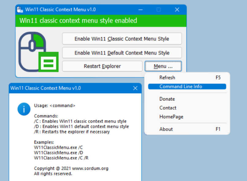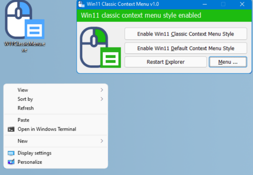 4、打开Win11的Classic Context Menu v1.0小程序,可以帮助用户快速将菜单设置成win10的经典模式。