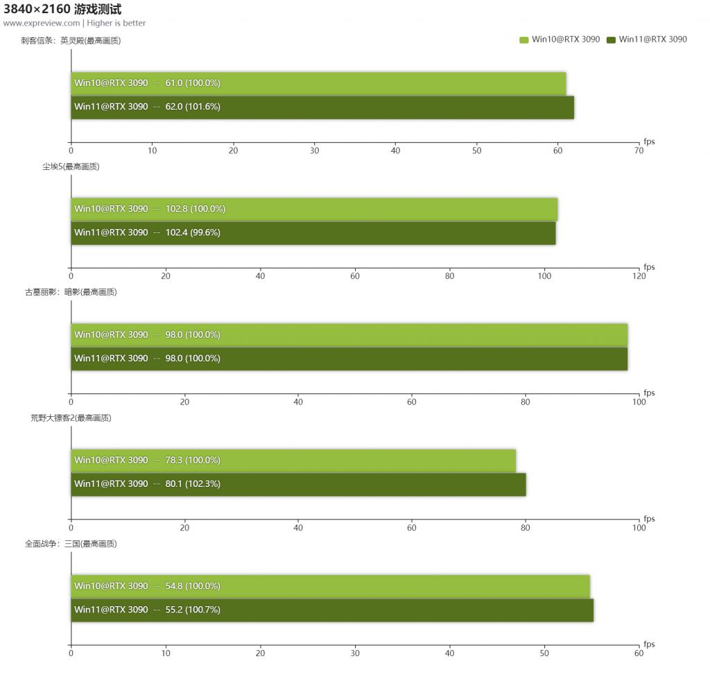 Windows 10 和 Windows 11 进行测试的都是新装的系统,除了驱动程序,仅安装测试所需要的平台和游戏。在游戏测试中,都是将画质设置为最高,并使用 4K 分辨率。显然这个平台有足够强的性能,应该说可以满足现阶段几乎所有游戏对配置的需求,也不需要尝试调整不同设置以保证流畅度。