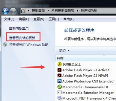 2、在安全模式桌面,点击开始-控制面板-程序和功能-查看已安装的更新,找到KB2859537补丁,将其卸载掉,如图所示: