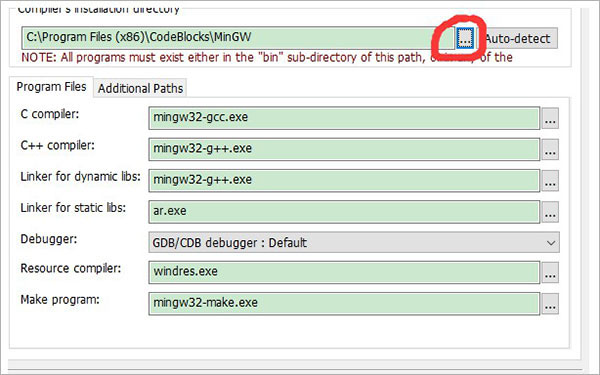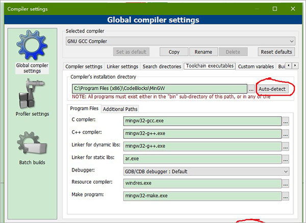 3、点击Auto-detect,然后点击OK,先看看自动搜索到编译器的路径能不能用,或者自己手动填入。