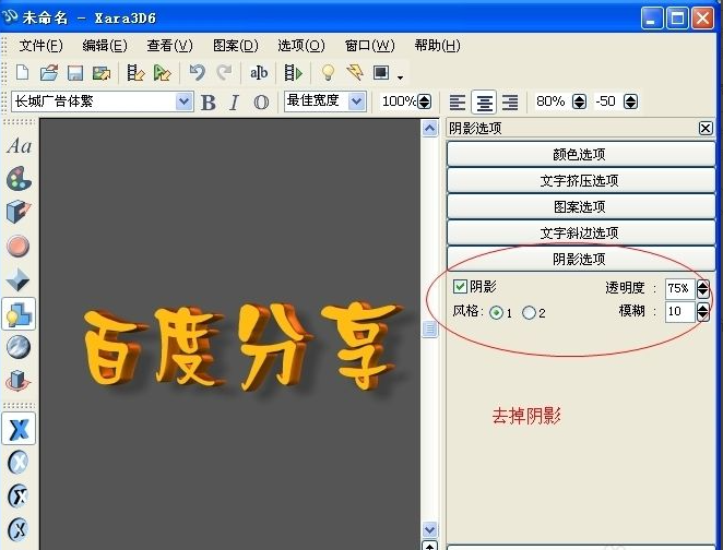 5、阴影在透明背景里效果非常不佳,所以我们将“阴影”选项去掉。