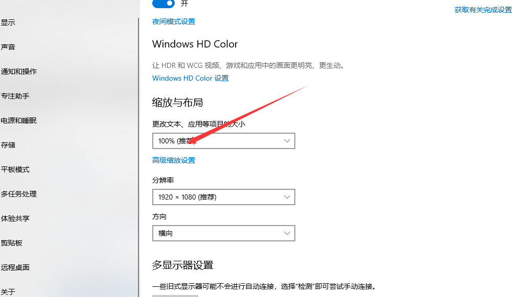 右击桌面空白处,选择【显示设置】,缩放与布局改为100%。