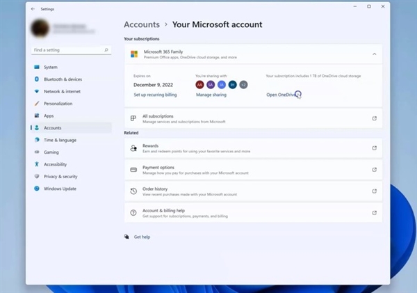 就如截图所示,Win11可以显示活动订阅和支付历史,其他还有包括奖励和可以在微软账户网页上找到的东西。