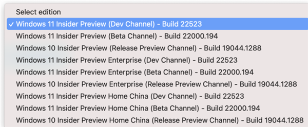 目前,Windows下载中心可供Insider会员下载的ISO镜像除了最新的Win11 22523,还有正式版Build 22000.194以及Windows 10 21H2(十一月更新)Build 19044.1288。
