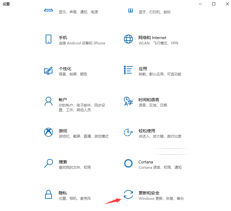 2、在Windows设置中打开【更新和安全】。